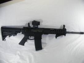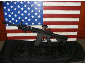 Rifle has Troy front and rear aluminum back up iron sights, Magpul angle grip, Vortex Viper red dot optic, Spikes Tactical 16" barrel and a black tactical carry bag.