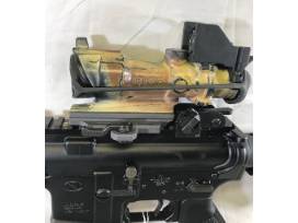 - Trijicon ACOG magnified optic with mini red dot mounted on top w/ impact guard.