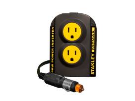 The STANLEY power inverter delivers 140 Watt of practical household power you can transport using a single 120 volt AC outlet and 2 USB charging ports. Simply plug the power inverter into your vehicle's DC plug (cigarette lighter) and plug your devices into the power inverter; perfect for charging small electronics like a cell phone, tablet computer, and other electronic devices. Features a fan free, silent running design and low voltage that automatically shuts the power inverter off when your vehicle battery is running low; will not drain your vehicle battery, leaving you stranded. Includes a mounting kit for convenient location placement that won't move as you drive. Power inverter clicks and locks into place on mount and releases with the push of a button.