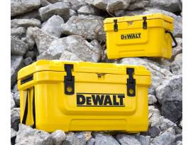 The DEWALT Cooler is the all-in-one tool for keeping your food and drinks cold on the jobsite. The T.O.U.G.H. Roto-Mold design stands up to the roughest treatment and ensures temperature optimization under great heat as the reinforced insulation provides superior ice retention. Cooler features include a heavy-duty metal handle for comfortable handling and transporting. The integrated bottle opener makes certain that you'll never have to look for a bottle opener again. The easy-open lid latches provide secure closure while the lid gasket locks in the cold. The lid holds two cans on the outside and is designed to store an optional ice pack on the inside.