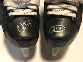 Skate like the pros! This pair of #13 Cam Atkinson game used skates are custom sized and are both signed as pictured.