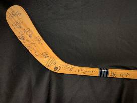 This item is a Limited Edition Signature Series hockey stick signed by 22 Washington Capitals players, including Alex Ovechkin and Brooks Laich This vintage, lightweight wooden stick evokes nostalgia, while boasting an impressive collection of signatures. It is impressive featuring so many players from different rosters donated by our Event Chair Ken Asbury. This stick does not come with a certificate of authenticity.
