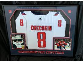 This item is an Alex Ovechkin Washington Capitals 2018 Stanley Cup Champions framed autographed white Adidas authentic jersey.