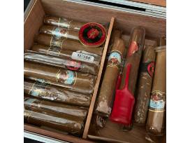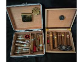 Cigars from the collection of 2 Marines. This set include 2 humidors featuring cigars from the personal stash of PHWFF President and CEO Todd Desgrosseilliers and Harold Harsh owner and guide of Spring Creek Outfitters. Each humidor is cedar lined. Over all the collection includes over 20 cigars! This also comes with a cigar cutter and lighter. One humidor includes a challenge coin from the Battalion that Todd commanded with matching brander cigars which can make a great conversation piece. Some brands of the cigars include Makers Mark Bourbon Seasoned 650, Porlarranaga, Cohiba Nicaragua, Rocky Patel Vintage 1990, and so many others! That's not all round out the set of cigars with a handmade wooden Ashtray by Carlos Rodriguez US Marine and PHWFF participant. This ashtray fears PHWFF pins with each side.