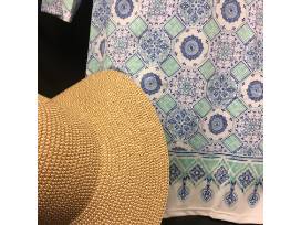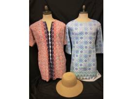 Two beautiful and colorful dresses (both size L) are ready for spring outings or your next warm-weather vacation. These wrinkle-resistant dresses are comfortable yet classy and easily go from day to evening. The hat is a nice accent for the dresses but would work well with a variety of outfits. Both dresses and the hat offer UPF 50+ protection.