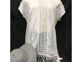 Get ready for warmer days ahead with this versatile, white beach cover-up (Size XL) and black and white woven hat. The cover-up will be perfect for poolside lounging or a day at the beach. The hat offers a practical yet stylish solution to sun protection (UPF 50).