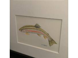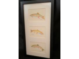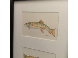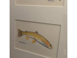 Michael Simon is an angling artist who has been painting beautiful fish and their surroundings for over 50 years. Michael's artwork has graced the covers and pages of many magazines and books as well as the walls of museums and galleries. One of his paintings of a trout was featured on the Virginia State license plate. This piece of artwork features three original watercolors of a brook trout, brown trout, and rainbow trout.