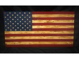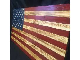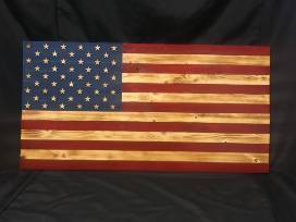Show your patriotism with this inspiring American Flag! Artist Lou Keeler, of Old Glory Flags and Woodcrafts, hand-crafts each flag with great care and attention to detail. Wood & Paint, 36"X 19"