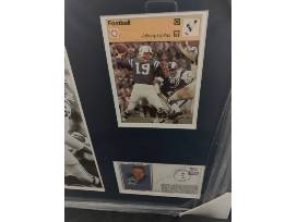 This item is an autographed Johnny Unitas collage photo. John Constantine Unitas; nicknamed "Johnny U" and "The Golden Arm"; was an American football player in the National Football League (NFL). He spent the majority of his career playing for the Baltimore Colts. He was a record-setting quarterback; and the NFL's most valuable player in 1959; 1964; and 1967. For 52 years; he held the record for most consecutive games with a touchdown pass; until broken in 2012 by Drew Brees. Unitas was the prototype of the modern era marquee quarterback; with a strong passing game; media fanfare; and widespread popularity. He has been consistently listed as one of the greatest NFL players of all time. Career highlights for Unitas includes: Super Bowl champion (V); 3 NFL champion; 10 Pro Bowl; 5 First-team All-Pro; 3 Second-team All-Pro; 3 AP NFL Most Valuable Player; 3 Bert Bell Award; NFL Man of the Year (1970); 4 NFL passing yards leader; 4 NFL passing touchdowns leader; NFL 75th Anniversary All-Time Team; NFL 1960s All-Decade Team; Indianapolis Colts No. 19 retired; Louisville Cardinals No. 16 retired; and Pro Football Hall of Fame inductee. Display frame and certificate of authenticity is included. The winning bidder is responsible for shipping costs; which will be added to the final winning bid.