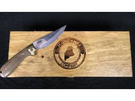 Designed by J.P. Nickerson in collaboration with Project Healing Waters Fly Fishing; there were only 50 Mossy Creek knives made; each individually numbered. Purchase one of the ten remaining limited-edition Mossy Creek knives now to support Project Healing Waters Fly Fishing. Like all Maine Knife Company knives; the Mossy Creek comes packaged in a handmade pine box with solid brass hardware and lock; a certificate of authenticity; a numbered Maine Knife Company challenge coin; a leather sheath; a hand signed and numbered design print; a cleaning cloth; a Maine Knife Company Gold Card; and a lifetime transferable warranty.Tang: full; blade length: 3.75"; handle length: 4.5"; overall length: 8.25";Guard: brass guard; lanyard hole: yes; handle material: walnut