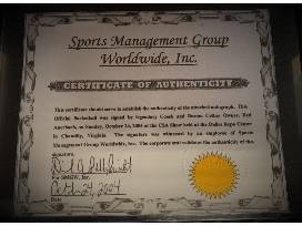 This item is an autographed basketball signed by legendary Coach and Boston Celtics owner, Red Auerbach. Arnold Jacob "Red" Auerbach was an American basketball coach of the Washington Capitols, the Tri-Cities Blackhawks and, most notably, the Boston Celtics. After he retired from coaching, he served as president and front office executive of the Celtics until his death. As a coach, he won 938 games (a record at his retirement) and nine National Basketball Association (NBA) championships in ten seasons (a number surpassed only by Phil Jackson, who won 11 in eighteen seasons). As general manager and team president of the Celtics, he won an additional seven NBA titles, for a grand total of 16 in a span of 29 years, making him one of the most successful team officials in the history of North American professional sports.