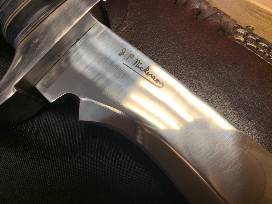 SWAMP BUCK - Signature Series. Maine Knife companies signature series represents extremely limited product runs of specially designed knives that feature The Maine Knife Company's designer J.P. Nickerson's signature laser etched into the blade. The Swamp Buck is their biggest knife to date coming in at 15.5 inches long with a massive 10-inch blade made from D-2 steel and hand polished to a brilliant finish. Each Swamp Buck comes individually number on the blade 1-15. This is blade #14! The Maine Knife Company logo is stamped into each blade. Only 15 Swamp Bucks have been produced. Each comes in a specially designed handmade storage box (lockable with brass hinges and hardware and a brass lock with keys) as well as a wall mountable wooden display stand hand made for the Swamp Buck. Swamp Knife Specs: Tang: Half Polished D-2 steel, Blade length: 10", Handle length: 5.5",Overall length: 15.5", Guard & Pommel: D-2 steel, Lanyard hole: no, Handle Mat: Stag & Brass, Pins: None, Blade Stamp & Laser Etch: yes, Production Amount: 15, individually numbered on the blade, Lifetime Guarantee & Transferable: YES, Sheath: Custom Leather with Maine Knife Company stamp embossed on sheath, Overall weight: 21 oz., Comes with Metal Maine Knife Company Challenge Coin, Maine Knife Company microfiber cleaning cloth, Maine Knife Company hand signed design print with matching number to knife, and Maine Knife Company Gold Card.