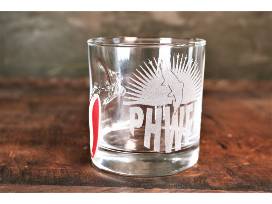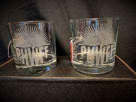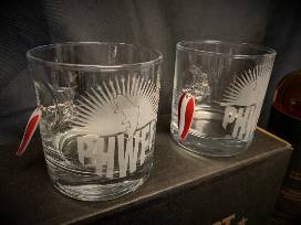 For the whisky and fishing enthusiast, enjoy Port Cask Finished Virginia-Highland Whisky (750 ml) in this set of rock glasses with PHWFF etching. PAll packaging and raw materials are made in the USA. Each glass is embedded with a real red & white spoon fishing lure! BenShot takes pride in each glass they make. Set comes with two 11oz rocks glasses. Glasses should be handwashed.