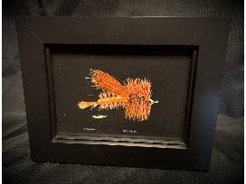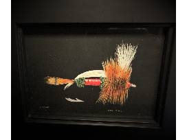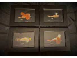 1Become the proud owner of four framed original scratch art and oil renditions of flies by artist Ed Klinkhart. Mr Klinkhart is a retired Alaska Department of Fish and Game biologist avid fly fisher, tier and artist. The dramatic black background showcases the brilliant colors of each hand painted work of art. This set of four (9 1/2 X 7 1/2) titled Royal Humpy, Sofa Pillow, Beadhead Hares Ear and Parachute Adams, will make a stunning attention to your home or office. The winning bidder is responsible for shipping costs, which will be added to the final winning bid.