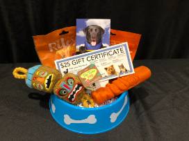Keep your pet happy and clean! Includes a $25 gift certificate towards grooming, boarding, training or day camp at any Kennelwood Location! Package also includes brand new toys for your pup & two packs of Riley's Organic Dog Treats!
