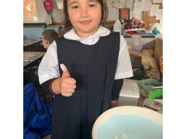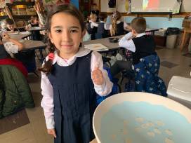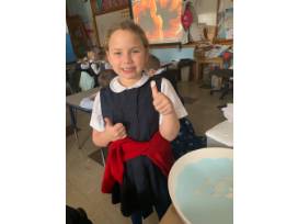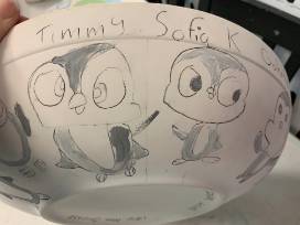 Nothing fishy about this dish! This large platter is a tribute to the New York Aquarium in Coney Island. It features thumb print fishies and the initials of each of student. Beautiful to display or for everyday use.