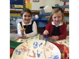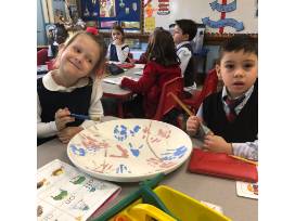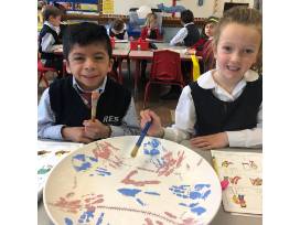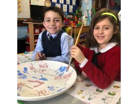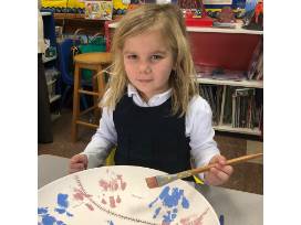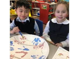 Mrs. Romeo's class really knocked it out of the park with this one! This large, baseball themed platter features each student's handprint and celebrates America and New York's pastime! It is an adorable and functional piece that is sure to be a home run on anyone's table.