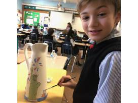 Nothing celebrates the spirit of New York City more so than Lady Liberty on the 4th of July. This pitcher features the Statue of Liberty and dazzling fireworks hand painted and initialed by each student. It is the perfect addition to any summer table.