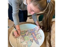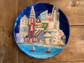 This gorgeous platter depicts the city sparking at night as seen from the water. It was hand painted and signed by Mrs. Nicastro's class. Each student added their own special touch to create this beautiful piece of art. What a perfect memento of your child's time at Resurrection.