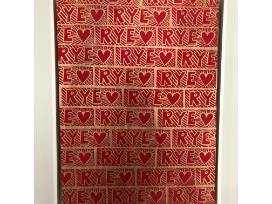 Original painting by local artist Katy Garry. RYE art lovers will enjoy this original block print on wood. Artwork is in white floating frame. Signed and Dated on back.