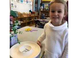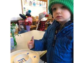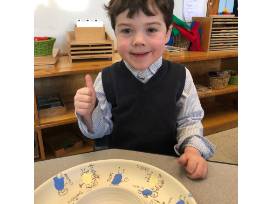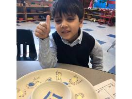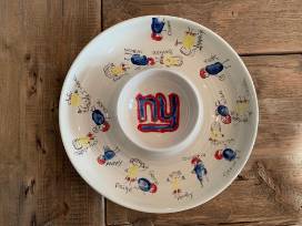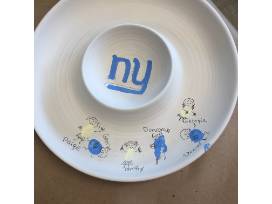 Enjoy this beautiful chip and dip bowl on game day or any day! This NY Giants themed piece features finger print football players and cheerleaders from each child.
