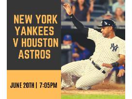 Enjoy 4 tickets to a Thursday evening game at Yankee Stadium on June 20th at 7:05 pm to watch the New York Yankees vs. the Houston Astros. Seats are in Section 325, Row 1, Seats 1-4.