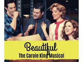 Enjoy two tickets to see Beautiful: The Carole King Musical on Broadway Tuesday 6/11/19 7:00pm. Seats are Orchestra section, Row K, Seats 9 & 11. Beautiful is the Tony and Grammy Award-winning musical, has thrilled with the inspiring true story of one woman's remarkable journey from teenage songwriter to the Rock & Roll Hall of Fame. From the string of pop classics she wrote for the biggest acts in music to her own life-changing, chart-busting success, Beautiful takes you back to where it all began - and takes you on the ride of a lifetime. Stephen Sondheim Theatre located at 124 West 43rd Street, NYC. Only valid 6/11/19, 7pm.