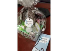 Escape the everyday with this custom basket from Beneath the Surface Spa in Madison, NJ! Included is a hour and a half medical massage, cosmetic bag, assorted skincare products and a shower bandana!