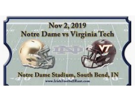 The Virginia Tech Hokies travel to South Bend to face the Fighting Irish in what promises to be a season defining game for both teams. You and three friends can take in the action from these four seats in Section 110, Row 20, Seats 5, 6, 7, 8 as these two teams battle down the stretch to the college football playoffs. Game time 2:30 ET on Saturday, November 2, 2019. Tickets available mid-August