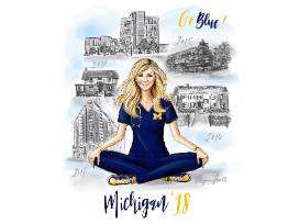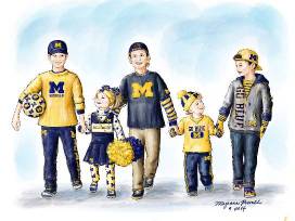 Go Blue! One officially licensed custom illustration featuring up to six (6) people wearing their favorite Michigan gear! Includes up to six (6) signed prints.
