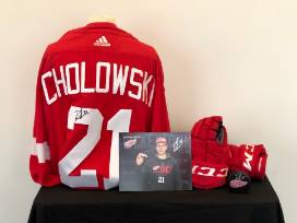 Bid on autographed memorabilia from Detroit Red Wings Defenseman Dennis Cholowski!
