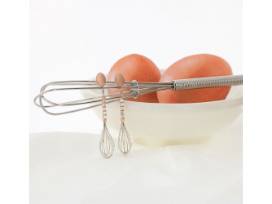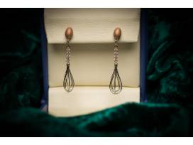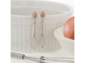 0Coffin & Trout Fine Jeweler's gorgeous gold and diamond earrings are the perfect accessory for the lady in your life. The custom-made 14K white and 20K rose gold earrings each feature one sandblasted rose gold egg at the top. Suspended from each egg is a rose and white gold whisk with five round brilliant cut diamonds bead-set in the handle. The earrings are pierced-style with posts and friction backs and measure 45.7 mm in overall length.