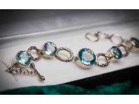 - A stunning lady's Sterling Silver and bezel set blue topaz bracelet with toggle clasp, 6.5-7.5 inches