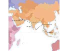 Choosing from several cruises ranging between 16 to 22 days, you can visit exotic and beautiful sights such as the Plain of Temples at Bagan or Myanmar's gold-plated crown of Burma, the Shwedagon Pagoda. Explore the vibrant city of Mumbai with its kaleidoscopic mixture of skyscraper, ornate Victorian buildings, and bustling bazaars. Indulge in active land and water sports and walk or drive to view more than 13,000 rare, free-roaming wild animals on Sir Bani Yas Island, United Arab Emirates.