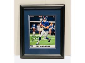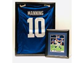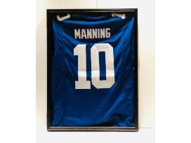 Two-time Super Bowl champion and MVP, Eli Manning personally autographed and donated this New York Giants #10 Nike jersey and photo. The jersey comes in a black jersey case with a framed photo.