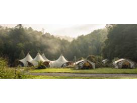 With convenient access to more than 800-square-miles of lush forest, pristine mountain views, and the Appalachian Trail, Under Canvas lets you explore the untouched beauty of the Great Smoky Mountains while enjoying the splendor of glamping in their authentic safari-inspired canvas tents. Find yourself immersed in an international biosphere reserve where you'll wake up to the sounds of nature on their 182-acre camp just minutes from America's most visited national park.
