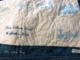 7th grade class handmade priceless memory quilt made by Mrs Berg.
