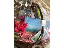 $50 gift card Saunoris. 2 of Raye's Children's book illustrated, 3 watercolor Easter Cards designed by Raye. 8 x10 and matte frame acrylic gesso print of Noah's Arc of Raye's and more!