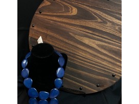 Letters with Jamie provides affordable Calligraphy Service, wedding envelope addressing, signs, and personalized vinyl. She has provided this Wooden Circular Sign and will customize it with a phrase or name of your choice. Also come with a Mujus Blue Necklace, made from Tagua Nut, native to South America.