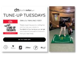Improve your golf game anytime and anywhere with this 12-month membership to Tune-Up Tuesdays--an exclusive weekly video series by Dustin Miller, PGA Director of Golf Instruction at BlackBear Golf Club. Video series includes swing tips, game strategy, and PGA Tour insights.