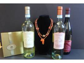 Treat yourself to some of your favorite things! Wine, chocolate, & jewelry. This package includes three bottles of Via Veneto wine, a box of chocolate truffles from the Village Chocolatier, & a strand of smooth & faceted Cornelian semi-precious gemstones with a sterling clasp and sterling beads.