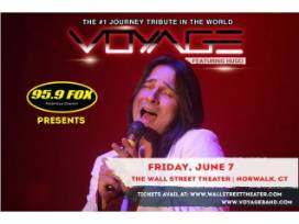 A pair of tickets to Voyage - The Ultimate Journey Tribute Band on Friday, June 7 @ 8:00pm. VOYAGE has been hailed by fans and critics alike as the #1 JOURNEY tribute band in the world, performing JOURNEY's music with chilling accuracy! Since 2005, VOYAGE has dominated America with more sold out shows than any other tribute.