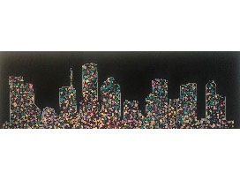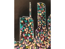Houston skyline fingerprint art created by the 2018/2019 Poe Second Grade Class.