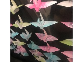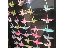 Origami Paper Crane's "Good Luck" created by Poe's 2018/2019 Third Grade Class.