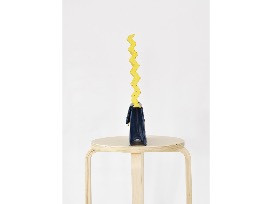 Sleek Vegan navy purse with fun yellow zig zag shoulder strap and gold clasp. Handmade in Houston by designer Maria Cadena. 10"W x 5.5"H x 2.5"D with 10" handle drop.