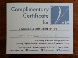 Donated By The Theatre of Western Springs, Vie Restaurant