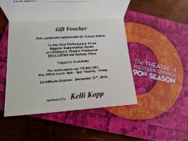 2 Tickets to any one performance at The Theater of Western Springs, at our regular subscription series or children's theatre productions excluding the Holiday Show. Subject to availability.