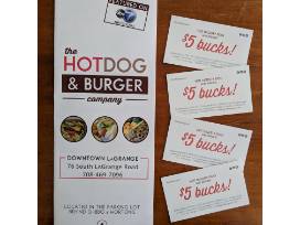 1$20 Gift Card to the Hot Dog and Burger Company. The Hot Dog & Burger Company in LaGrange puts a gourmet twist to traditional favorites. Menu has a wide variety of choices, everything from the classic Chicago-Style Dog and a BLT, Grilled Cheese to a Parmesan Crusted Patty Melt, a Stroganoff Burger, or a Smoked Sweet Italian Sausage.