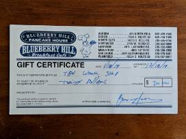 $20 Gift Certificate to Blueberry Hill Restaurant in LaGrange.