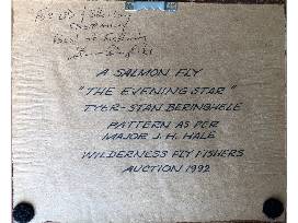 Shadowbox (7-1/4 x 9") with framed Salmon fly - "The Evening Star" tied by Stan Beringhele, 1992. Pattern as per Major J.H. Hale. Out-of-area buyers are responsible for shipping costs.